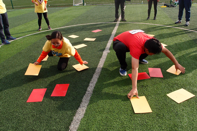 12日下午1點(diǎn)半,員工們聚餐完畢后,精神飽滿地到達(dá)了拓展基地。拓展訓(xùn)練的開(kāi)頭是《組建團(tuán)隊(duì)》,教練將所有人分成2個(gè)小隊(duì)(紅VS黃),分隊(duì)完成大家都做好了進(jìn)入活動(dòng)的準(zhǔn)備。如此一來(lái),接下來(lái)的項(xiàng)目就進(jìn)行地非常順利。激情節(jié)拍、皮筋傳情、扁帶速遞、不倒森林、速度翻牌、指壓板競(jìng)拍、躲避球、撕名牌……