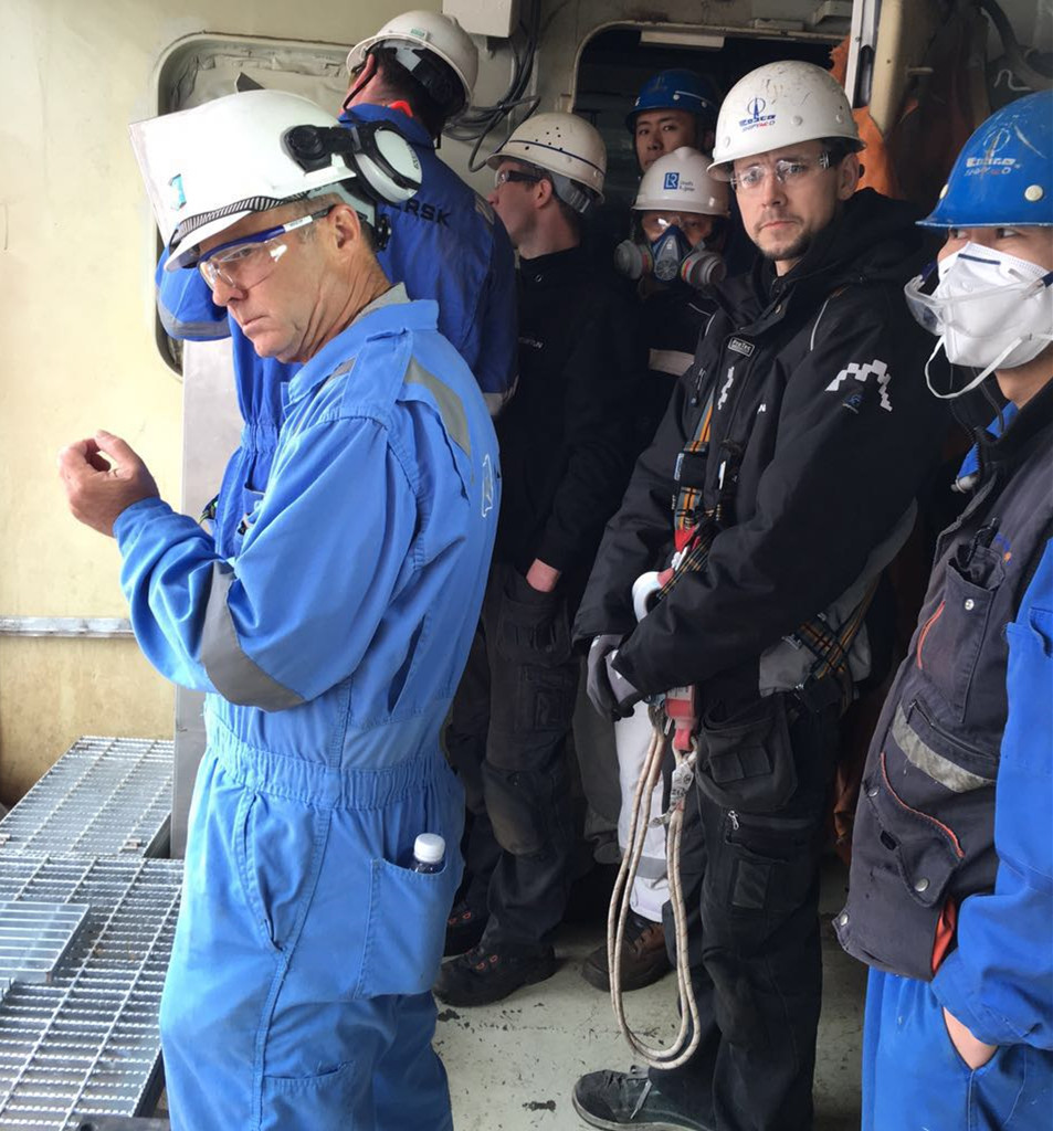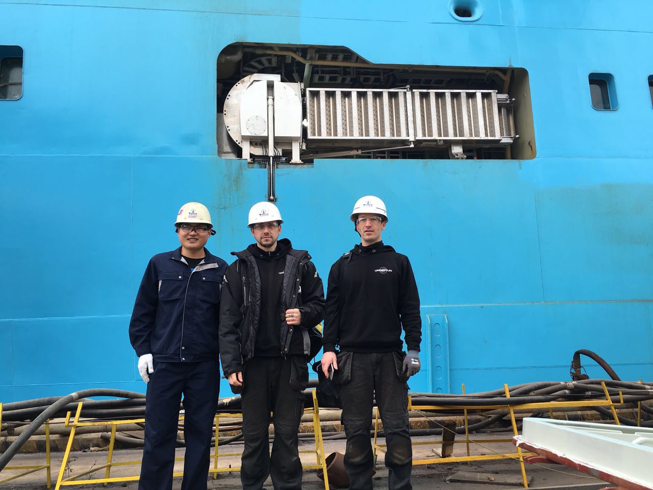 【領(lǐng)海要聞】2017年4月6、7日,大連中遠(yuǎn)船務(wù)和丹麥航運(yùn)巨頭馬士基在春寒料峭的泊位碼頭迎來(lái)了不遠(yuǎn)萬(wàn)里的挪威Undertun工程師。設(shè)備交付數(shù)月有余,各方代表都亟待著國(guó)內(nèi)首套液壓驅(qū)動(dòng)Gangway的功用表現(xiàn)。