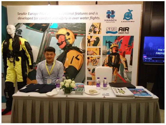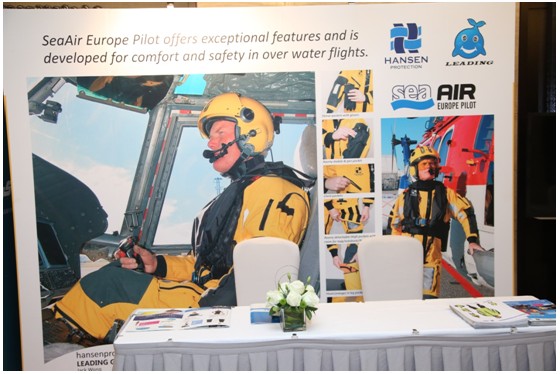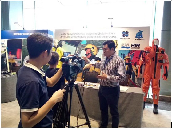在此次直升機論壇上,領海集團的一位客戶專門前來感謝,原因是去年冬天他們的一位飛行員失事后6個小時被成功救起,他正穿了我們的SEAWIND飛行員服。領海集團CEO王建軍表示,這是我今年聽到的最好的消息。在0-10攝氏度的水溫里,如果沒有特殊保護衣服,人只能存活3-5分鐘。參會期間,領海集團CEO王建軍和中國航空運輸協(xié)會通用航空分會常務副會長原中信海直總經(jīng)理劉鐵雄溝通了壓縮餅干在救災時候的應用,劉會長回憶了多年前救災時候使用直升機運送食品的不易,我們的GC-Rieber挪威壓縮餅干廣泛應用在聯(lián)合國救災領域,是聯(lián)合國合格供應商,GC-Rieber壓縮餅干具有體積小,能量大,耗水小的特點,在救災時候可以節(jié)省很多運力,劉會長表示贊賞。同時王總還接受了通航博覽媒體的采訪,王總重點介紹了降溫背心,E.COOLINE ®是一個基于創(chuàng)新功能性紡織品的3D系統(tǒng),可以穩(wěn)定并檢查體溫以至保存身體能量和健康。該系統(tǒng)即使在高溫下進行長達20小時的工作也能有效發(fā)揮功能。