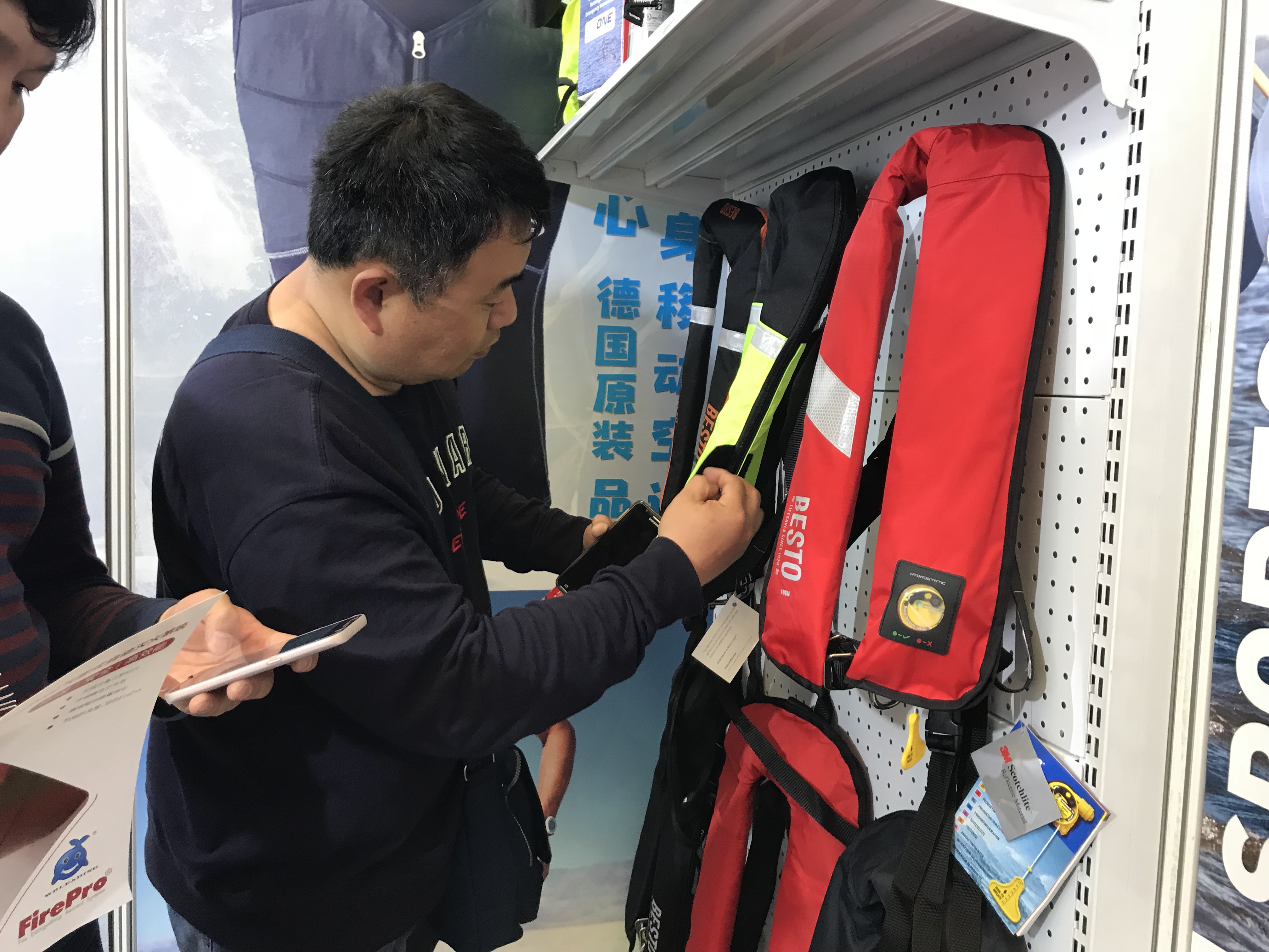 其中最?yuàn)Z人眼球的是我們的Besto游艇專用氣脹式救生衣,它不僅有做工精致的靚麗外觀,還具有輕巧靈活便穿戴的特點(diǎn),里面配備微型高壓儲(chǔ)氣鋼瓶及自動(dòng)充氣器,能在人員落水后受水壓影響迅速釋放自動(dòng)充氣。領(lǐng)海集團(tuán)市場(chǎng)經(jīng)理Sunny Yang表示,我們堅(jiān)信產(chǎn)品質(zhì)量+時(shí)尚=安全,我們帶來(lái)的救生衣滿足游艇業(yè)主的需求,展會(huì)現(xiàn)場(chǎng)有不少游艇俱樂(lè)部成員、帆船愛(ài)好者及出海垂釣的朋友對(duì)它愛(ài)不釋手,同時(shí)也表示展會(huì)結(jié)束后會(huì)進(jìn)行更深入的交流與合作。