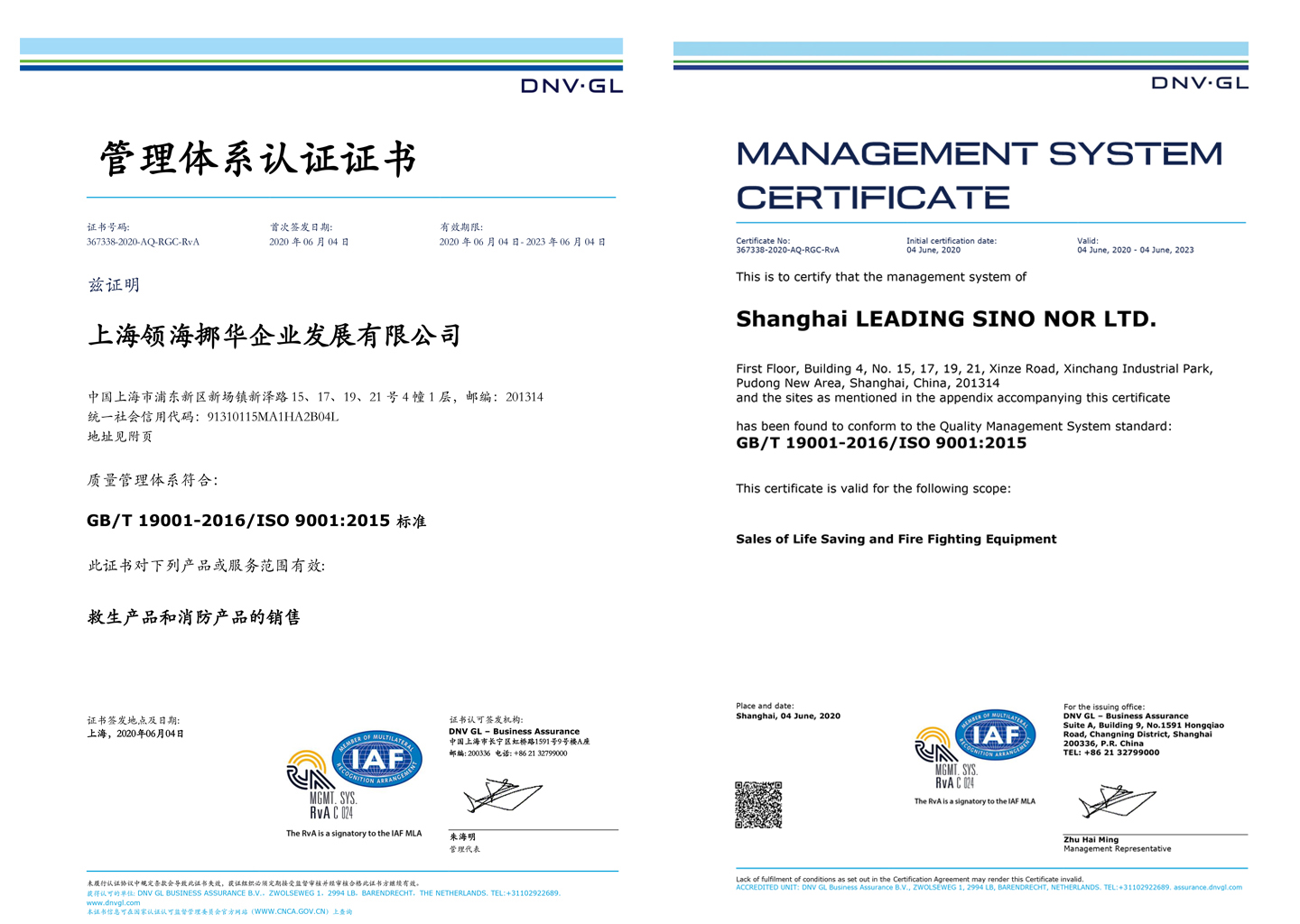 2020年6月4日,上海領(lǐng)海挪華企業(yè)發(fā)展有限公司成功拿到了國(guó)際權(quán)威認(rèn)證機(jī)構(gòu)DNV·GL ISO9001:2015 質(zhì)量管理體系認(rèn)證,通過(guò)該認(rèn)證對(duì)領(lǐng)海而言具有里程碑式的意義。這也標(biāo)志著領(lǐng)海管理體系在完整性、規(guī)范性、有效性及對(duì)資金、信息安全方面的管理得到權(quán)威機(jī)構(gòu)的認(rèn)可。