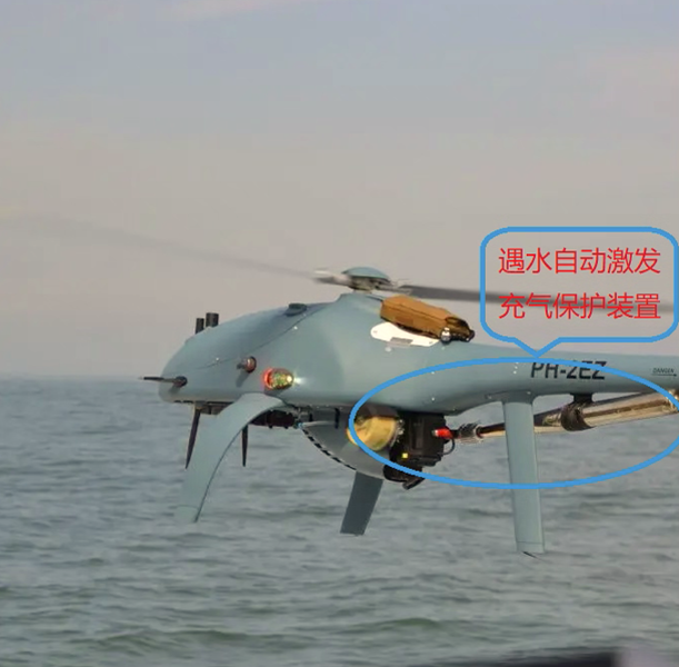 根據(jù)WRLEADING公司介紹無人機(jī)在水上飛行時(shí),為了保護(hù)無人機(jī),防止無人機(jī)沉沒水中,WRLEADING提供的遇水自動(dòng)激發(fā)充氣保護(hù)裝置經(jīng)過嚴(yán)格的測試,能夠在接觸到水面10cm的時(shí)候自動(dòng)激發(fā),和氣瓶相連的氣囊將自動(dòng)充氣,將保護(hù)無人機(jī)浮在水面,這樣能夠有效的保護(hù)客戶的財(cái)產(chǎn)安全。
