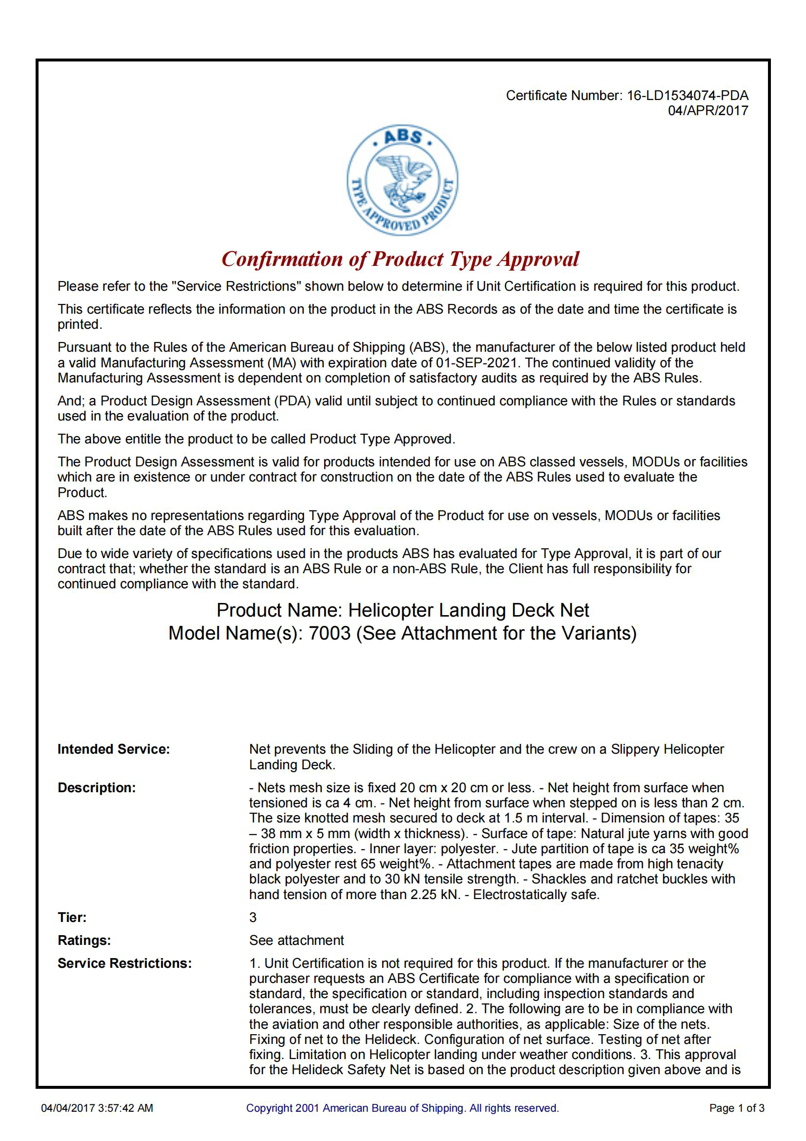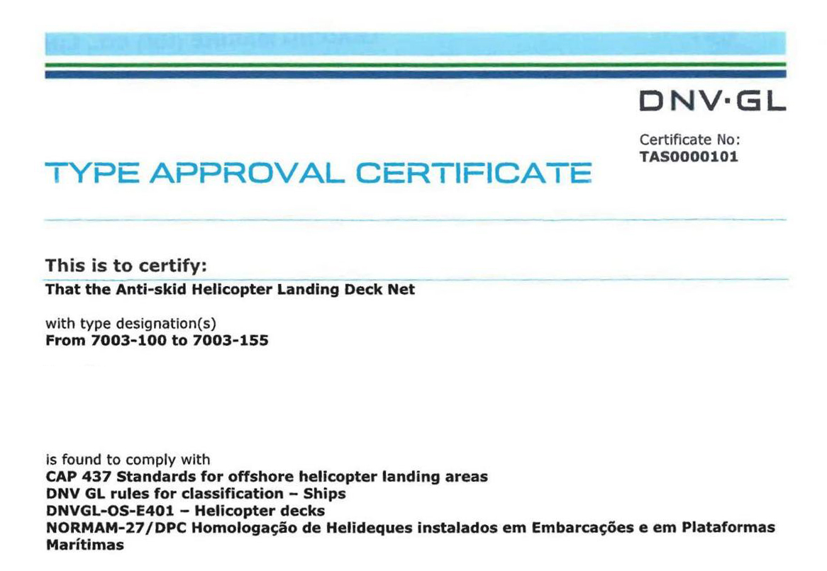 領海公司推出的FRICTAPE直升機甲板著陸網(wǎng),是一款按照最高標準設計的,世界上唯一一款摩擦系數(shù)超于0.65,且網(wǎng)的高度(包括打結處)不高于2.5cm著陸網(wǎng)。不僅符合CAP 437的要求,還可滿足巴西,挪威,美國等各海上石油領域的當?shù)匾?guī)范以及要求,備受海工船東青睞。