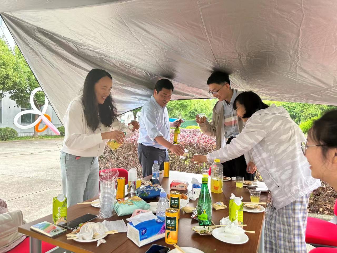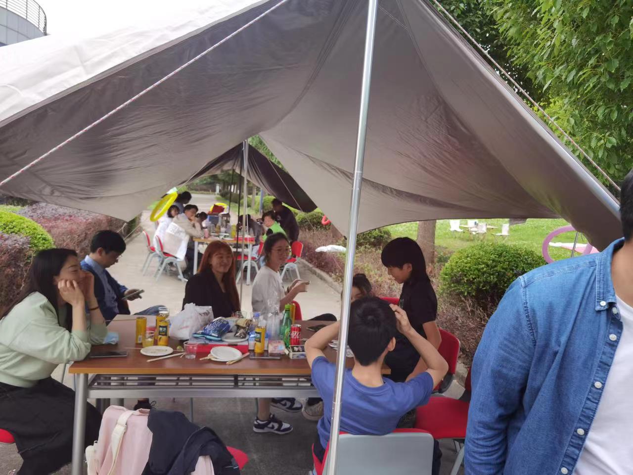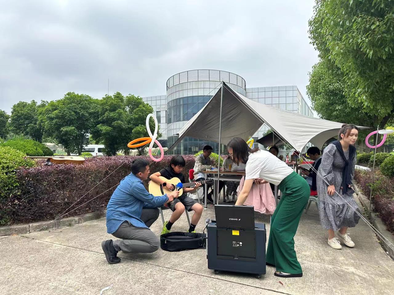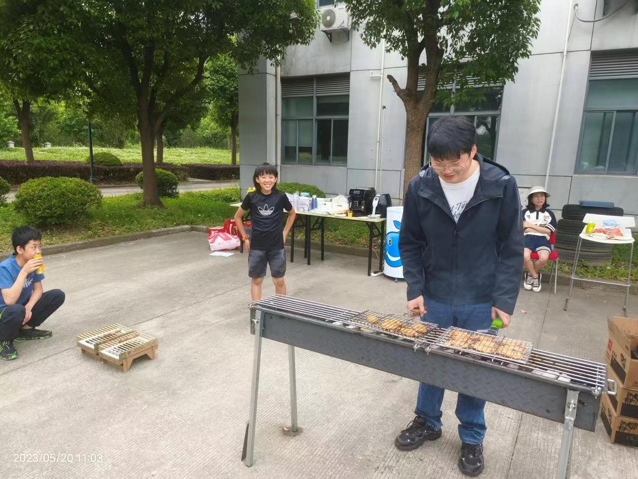 參觀完工作區(qū)域后,大家移步至室外大草坪開啟愉快的燒烤、K歌、游戲活動(dòng)。