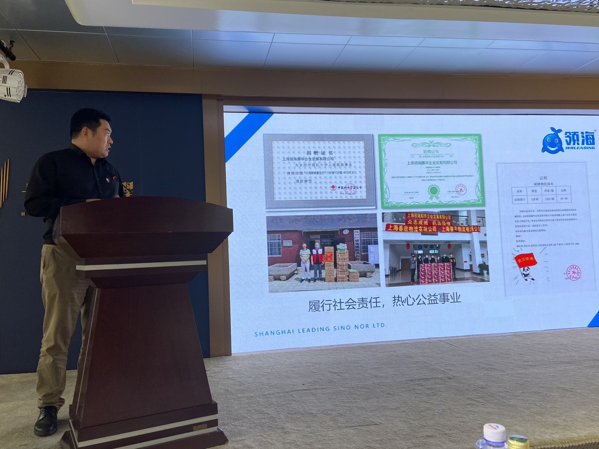 上海領(lǐng)海挪華企業(yè)發(fā)展有限公司CEO王建軍分享了公司極地救生裝備研發(fā)在綠色供應(yīng)商選擇,綠色新能源的結(jié)合,讓救助生命更綠色的理念和實(shí)踐,讓在場(chǎng)嘉賓紛紛表示贊同。
