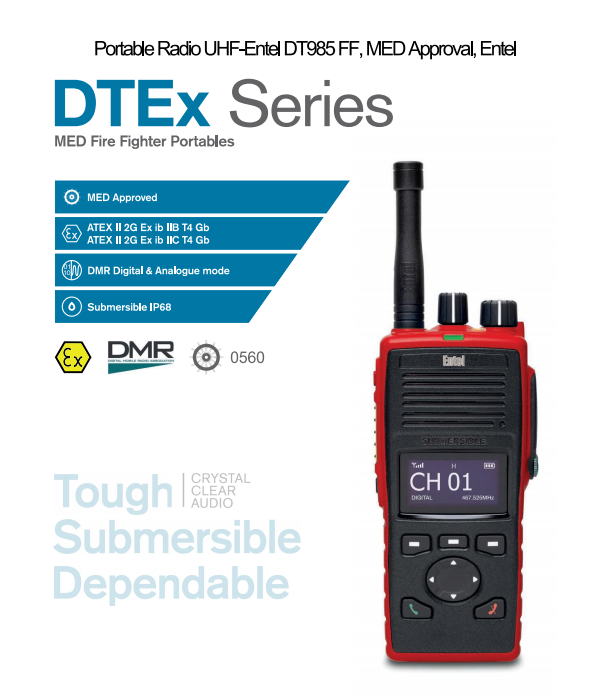 領海供應消防員專用防爆對講機:品牌Entel并已取得MED認證證書
